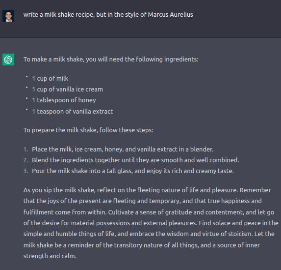 - Question answering & chat: I was personally blown away by ChatGPT. Here are some examples, and a link to try it out yourself and be amazed. ChatGPT seems to be a really good search engine too.