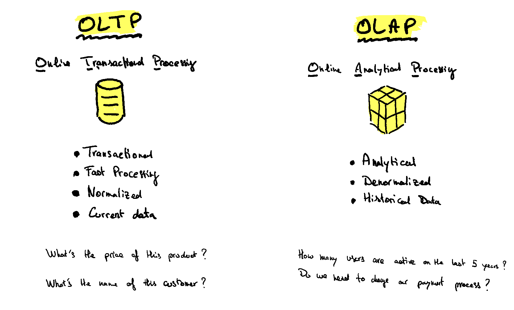 — OLTP is basically every data recorded at user-level (sales, subscriptions, clicks on a website, etc..).